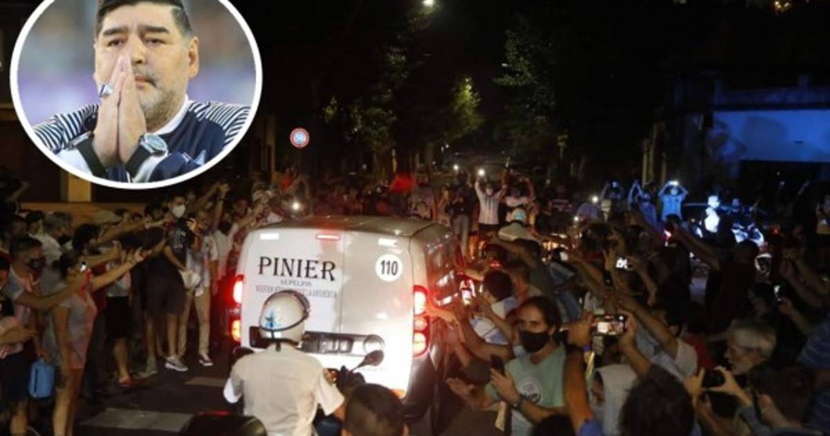 El féretro, trasladado en una ambulancia, estuvo rodeado de un fuerte dispositivo de seguridad para llegar al mismo lugar donde levantó Maradona la Copa del Mundo ante miles de personas.