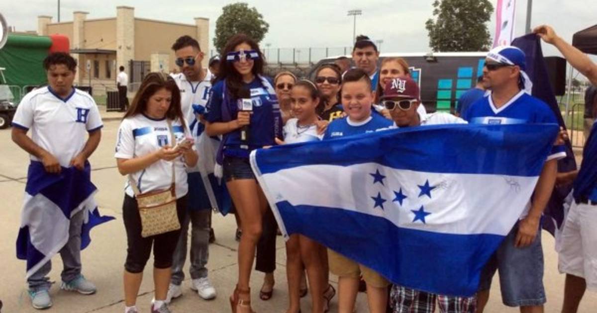 Nathalia Casco se une a la celebraciones de los hondureños previo al partido de esta noche frente a Estados Unidos.