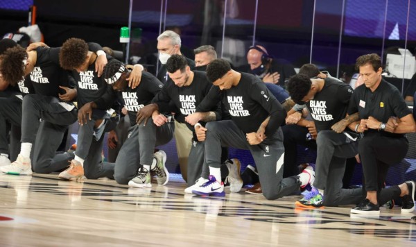La liga y los jugadores se comprometieron a que este final de su temporada, a pesar de la ausencia de aficionados y de las condiciones de aislamiento en la 'burbuja' de Disney World, contribuya a las actuales protestas contra el racismo desencadenadas por el crimen del afroamericano George Floyd a manos de un policía blanco dos meses atrás.