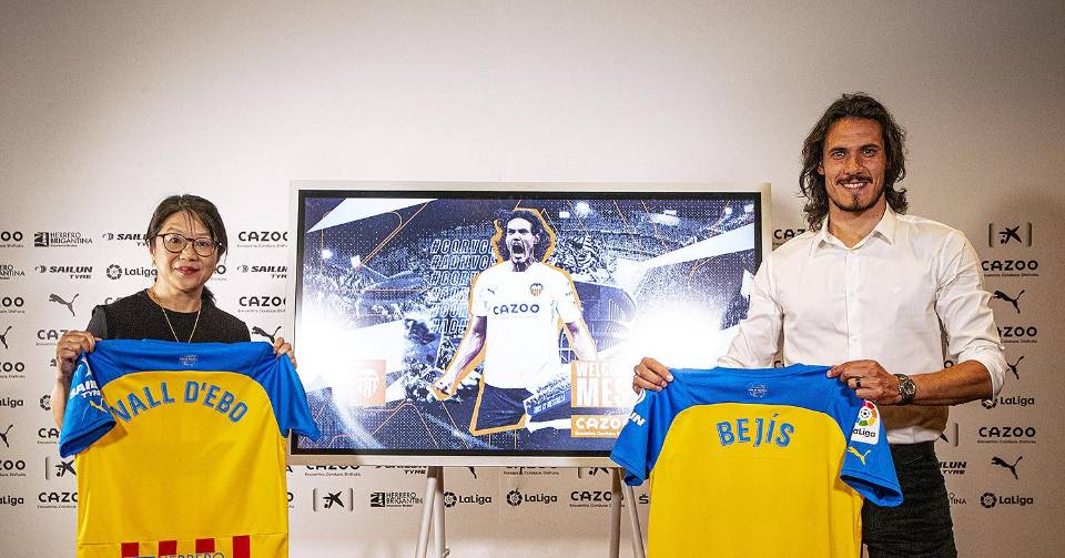 El club valenciano publicó una foto de Cavani junto a la presidenta del Valencia, Layhoon Chan, en la que cada uno sostenía una camiseta del Valencia con los nombres de Bejís (Castellón) y Vall d’Ebo (Alicante), dos de los municipios valencianos afectados por los graves incendios sufridos este verano.