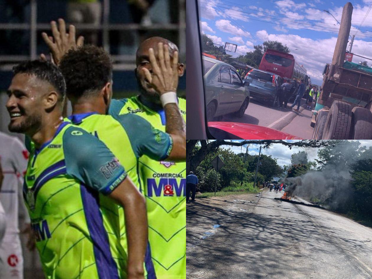 El bus del Olancho FC tuvo que ser detenido este viernes debido a una huelga de manifestantes en el municipio de Talanga, Francisco Morazán. El equipo pampero se desplazaba rumbo a San Pedro Sula cuando se encontró con el bloqueo en la carretera que conduce hacia Tegucigalpa, lo que obligó a frenar su trayecto.