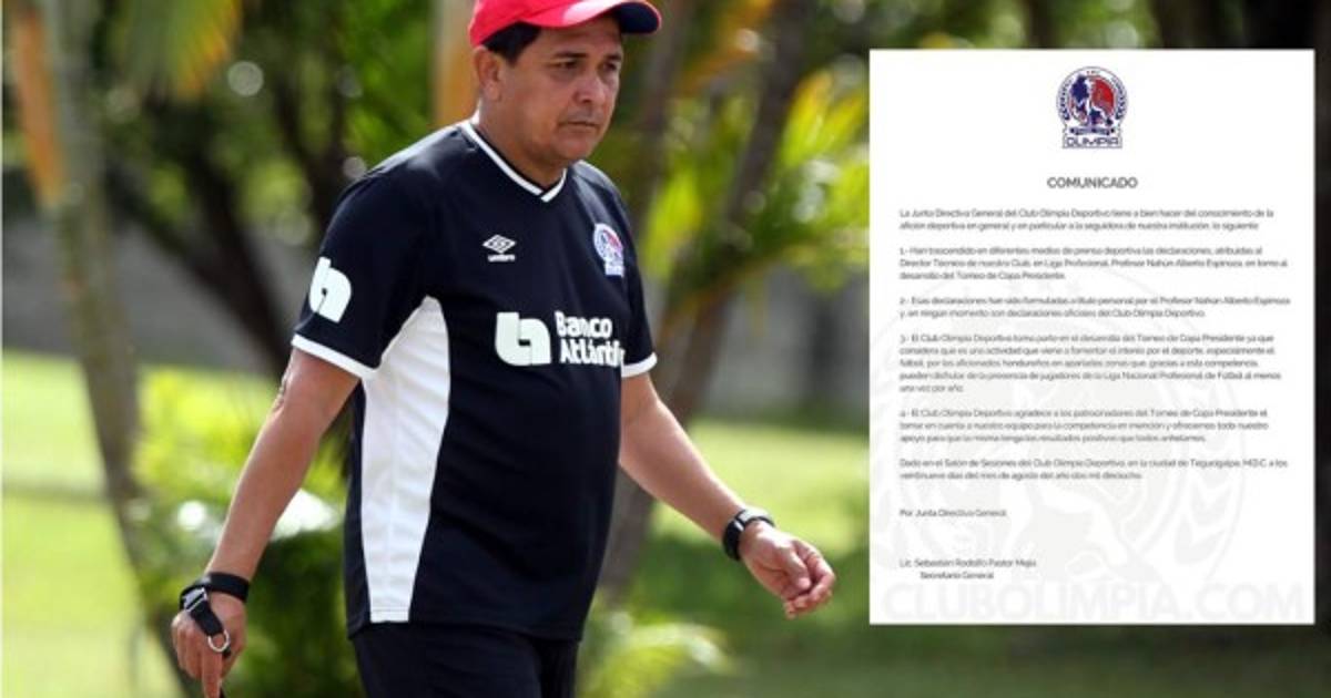 En el Olimpia no han gustado para nada las polémicas declaraciones de Nahún Espinoza criticando la Copa Presidente y este miércoles desde el club blanco ha emitido un comunicado sobre el tema, en el que no respaldan al entrenador merengue.