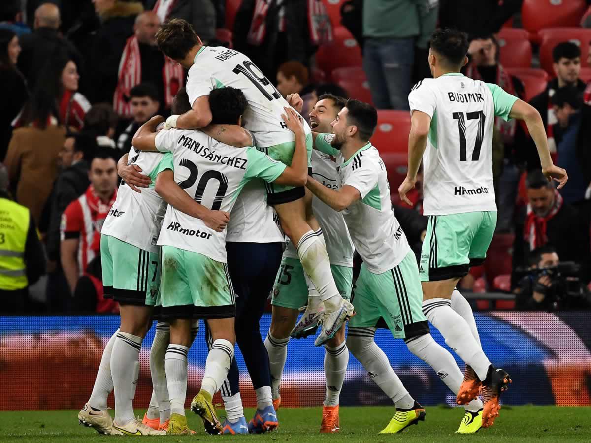 El equipo rojillo hizo buena su victoria 1-0 en la ida en El Sadar para lograr el pase a la segunda final copera de su historia, tras un partido en el que Iñaki Williams adelantó al Athletic (33), pero Pablo Ibáñez empató casi sobre la bocina (116).