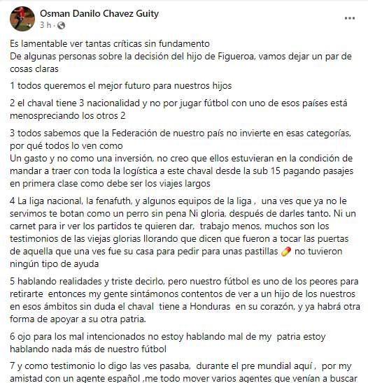 El exmundialista con la Selección Nacional de Honduras en Sudáfrica 2010 y Brasil 2014, publicó varios puntos a considerar sobre la decisión de Keyrol Figueroa de jugar para la selección de Estados Unidos.
