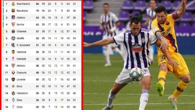 VALLADOLID: Jordi Masip, Javi Moyano, Kiko Olivas, Javi Sánchez, Raúl Carnero, Joaquín Fernández , San Emeterio, Rubén Alcaraz (Ünal, m.46), Kike Pérez, Óscar Plano (Waldo, m.80) y Sergi Guardiola (Sandro, m.61).BARCELONA: Ter Stegen, Nélson Semedo, Piqué, Lenglet (Ronald Araujo, m.56), Jordi Alba, Sergi Roberto, Sergio Busquets (Junior Firpo, m.74), Arturo Vidal, Riqui Puig (Rakitic, m.56), Griezmann (Luis Suárez, min.46) y Messi.