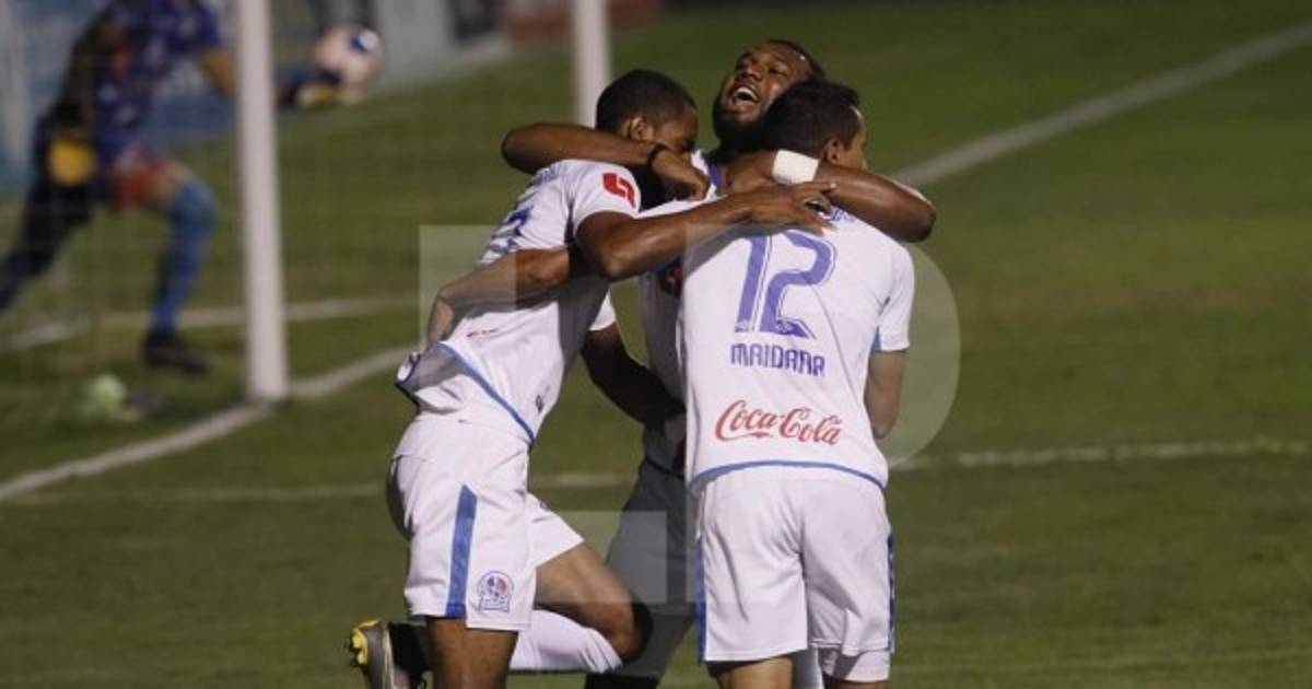 La celebración de los jugadores merengues tras el tanto de Beckeles. Foto Ronald Aceituno