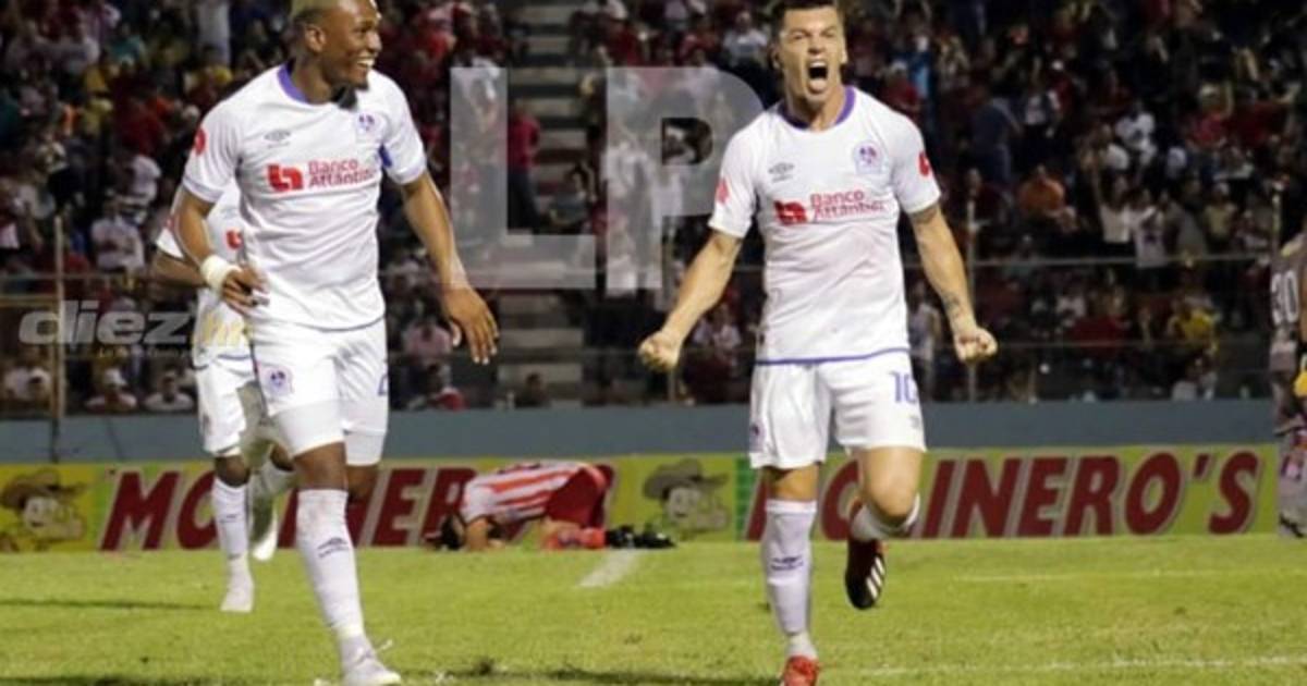 Se disputaba un juego parejo en La Ceiba. Pronto Olimpia encontraría el empate. Al minuto 26, Deiby Flores envió un globo al área, este fue prolongado por Jorge Benguché, en el corazón del área, como un fantasma apareció José Mario Pinto, ganó la posición a Jairo Puerto, se acomodó el balón con la zurda y con derechazo marcó el 1-1.