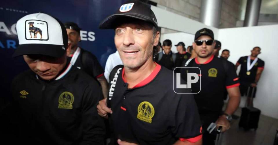 En medio de un gran festejo en el Aeropuerto Toncontín de Tegucigalpa, el director técnico de Olimpia, Pedro Troglio, atendió a los medios de prensa tras su arribo procedente de Costa Rica.