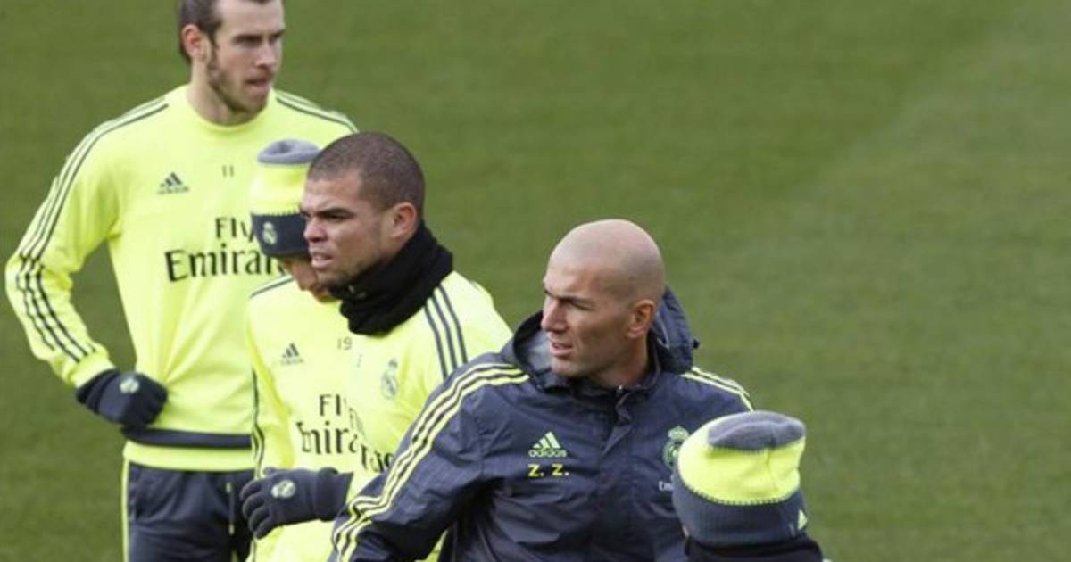 El portugués Pepe y el galés Gareth Bale trabajaron al margen del grupo en el penúltimo entrenamiento de la semana que dirigió el francés Zinedine Zidane, entrenador del Real Madrid, en la Ciudad Deportiva de Valdebebas.