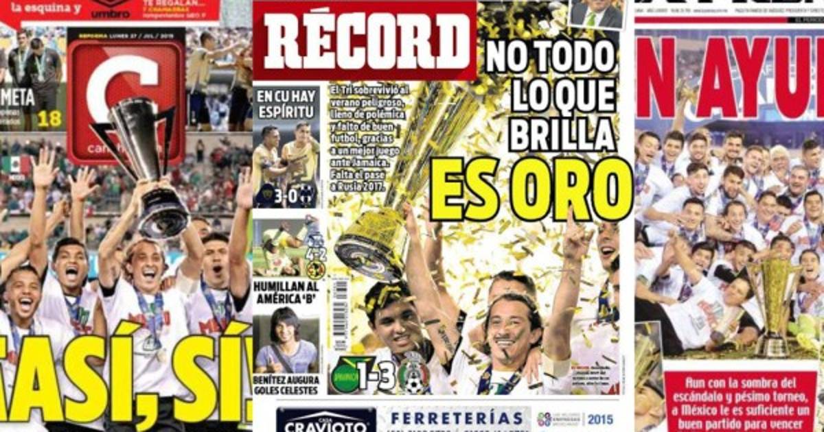 'No todo lo que brilla es oro', publicó en su portada el diario deportivo Récord, al resaltar que el 'Tri' consiguió el título en tierras estadounidenses 'falto de buen fútbol', aunque reconoció que presentó un 'mejor juego' ante Jamaica.