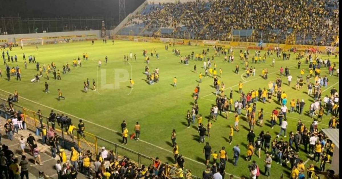 Cuando se disputaban 29 minutos y con el marcador 1-0 a favor de la máquina con gol de Ramiro Rocca, el partido se tuvo que detenerse luego que comenzó un caos en el sector de preferencia del estadio Morazán.