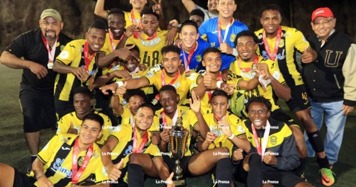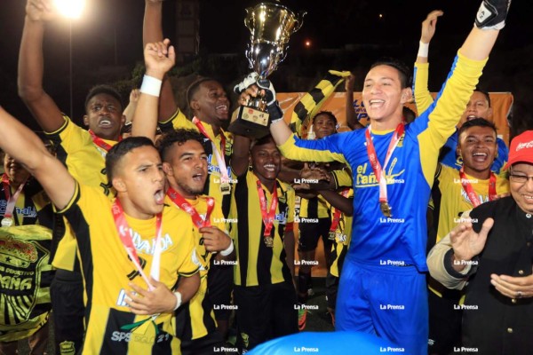 Los jugadores del Real España Reservas celebrando con el título. Foto Ronald Aceituno