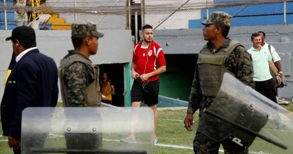 Real Sociedad llegó al estadio Morazán con seguridad como lo habían adelantado durante la semana. El contingente cuenta con unos 50 elementos, según lo dijo César Martínez, encargado de seguridad.