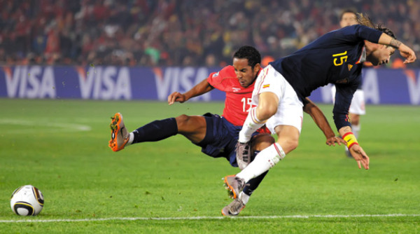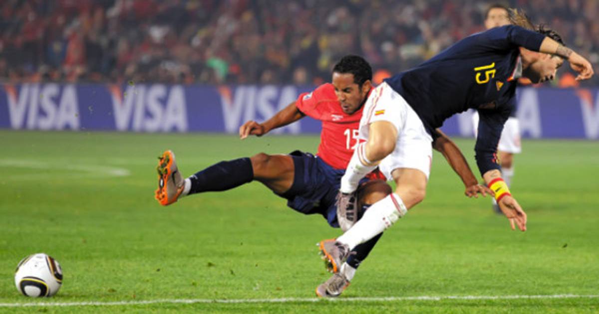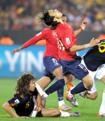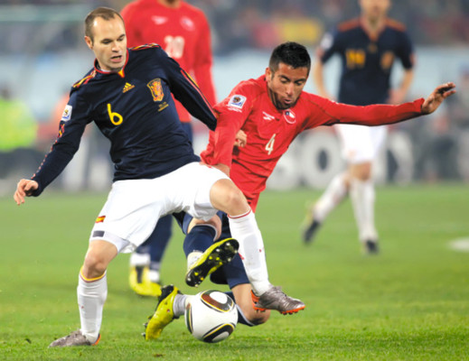 Chile salió a presionar, nada de encerrarse, y no tardó en armar jugadas de peligro. Los partidos de España suelen ser un monólogo en el que los ibéricos monopolizan la pelota y los rivales se agazapan atrás. Pero esto no se vio en Pretoria. Chile cumplió efectivamente su promesa de no renunciar a su fútbol ofensivo enseñado por Bielsa.