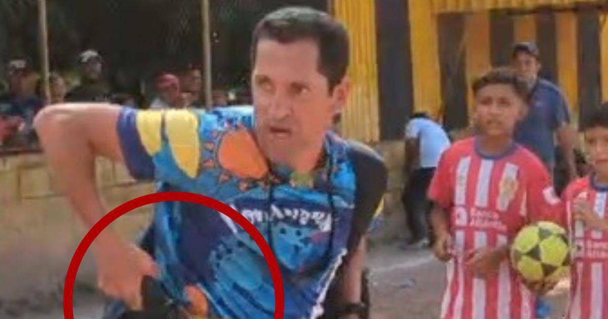 El reclamo del árbitro hondureño no se hizo esperar, y segundos después el personaje de género masculino se sacó un arma de fuego de su cintura y apuntó al tocapitos.