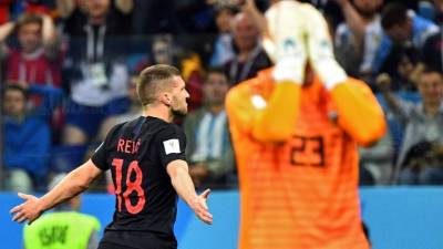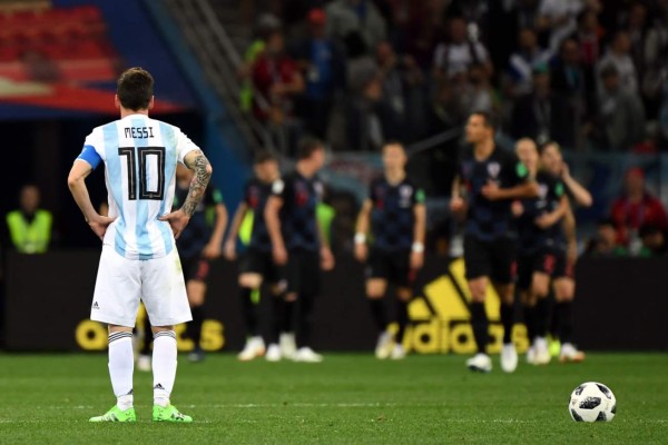 | Messi observando el festejo de los croatas tras uno de los goles. Foto AFP