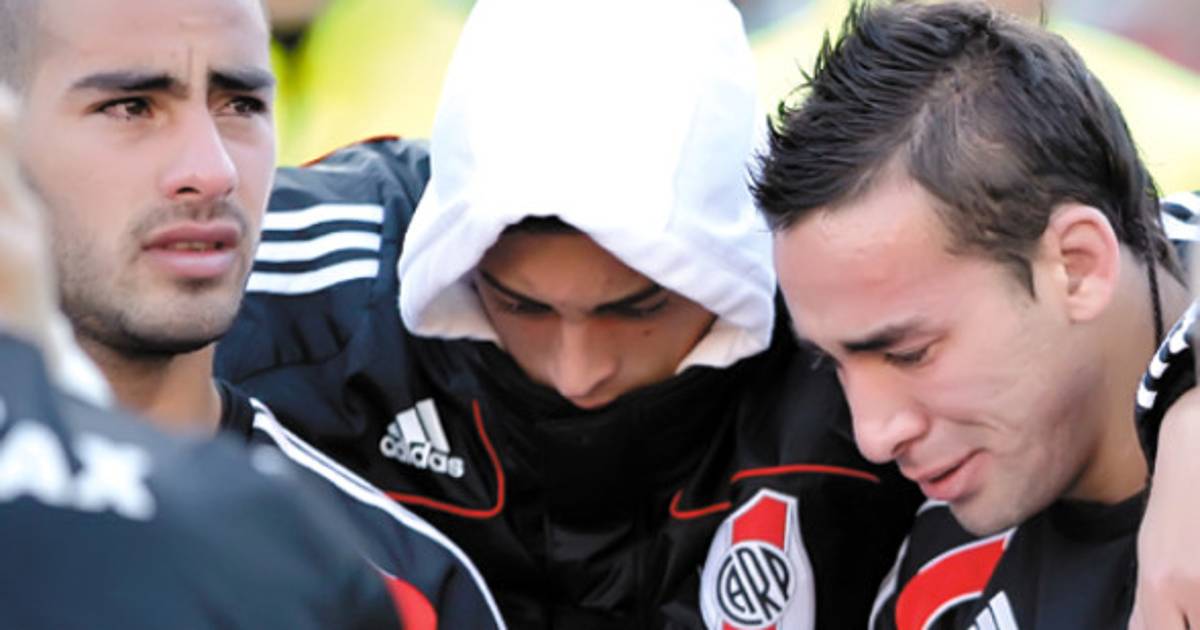 Los jugadores del River, desconsolados, tardaron varios minutos en reaccionar y fueron rodeados por un cordón policial para evitar agresiones por parte de los hinchas.