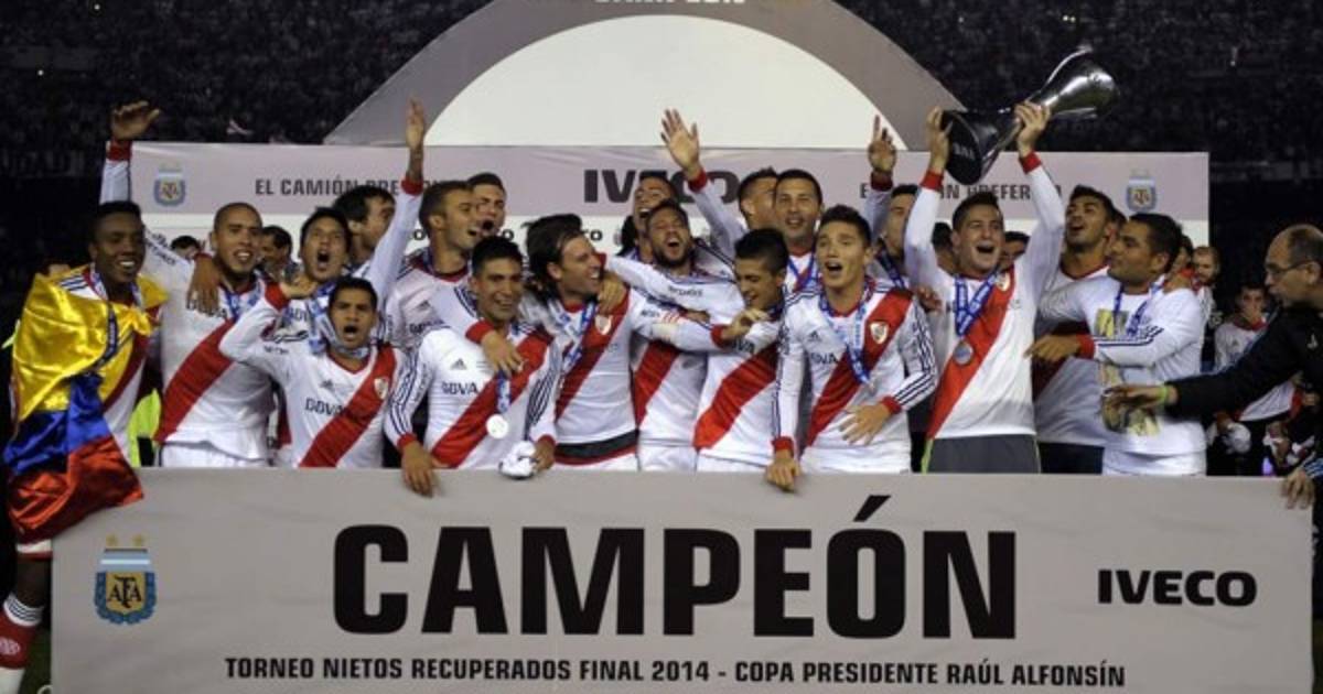 El capitán Fernando Cavenaghi, con un doblete a los 10 y a los 71 minutos; el defensor Gabriel Mercado, a los 25'; Cristian Ledesma, a los 63', y a los 89' el colombiano Teófilo Gutiérrez marcaron los goles del contundente triunfo de River en la décimonovena y última fecha del certamen.