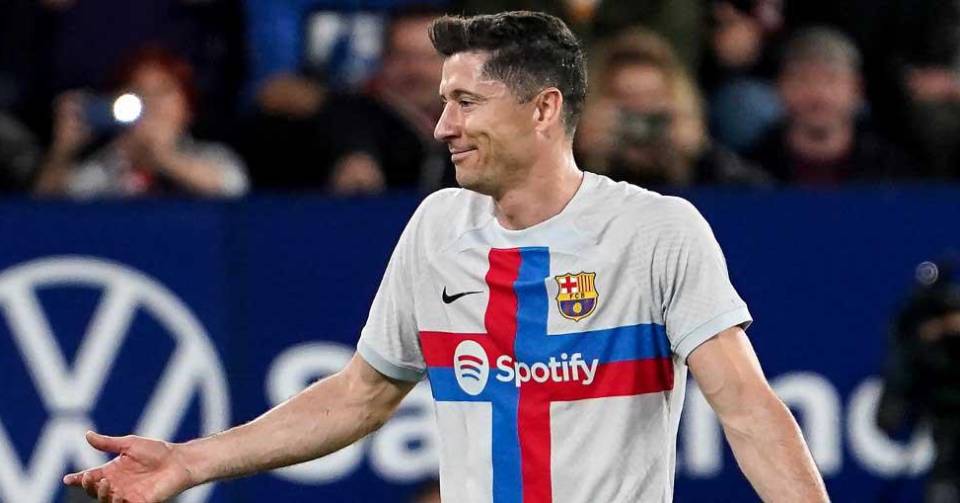 A los 30 minutos del primer tiempo, el goleador polaco dejó al cuadro culé con diez al recibir una segunda tarjeta amarilla por parte del árbitro central Gil Manzano.