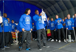 El cuadro inglés, que también descendió, no había tenido tiempo para celebrar porque estaba luchando por salvarse, algo que no logró, así que ayer pudieron al fin estar de cerca con la gente celebrando esa histórica copa que además los clasificó a la Europa League.