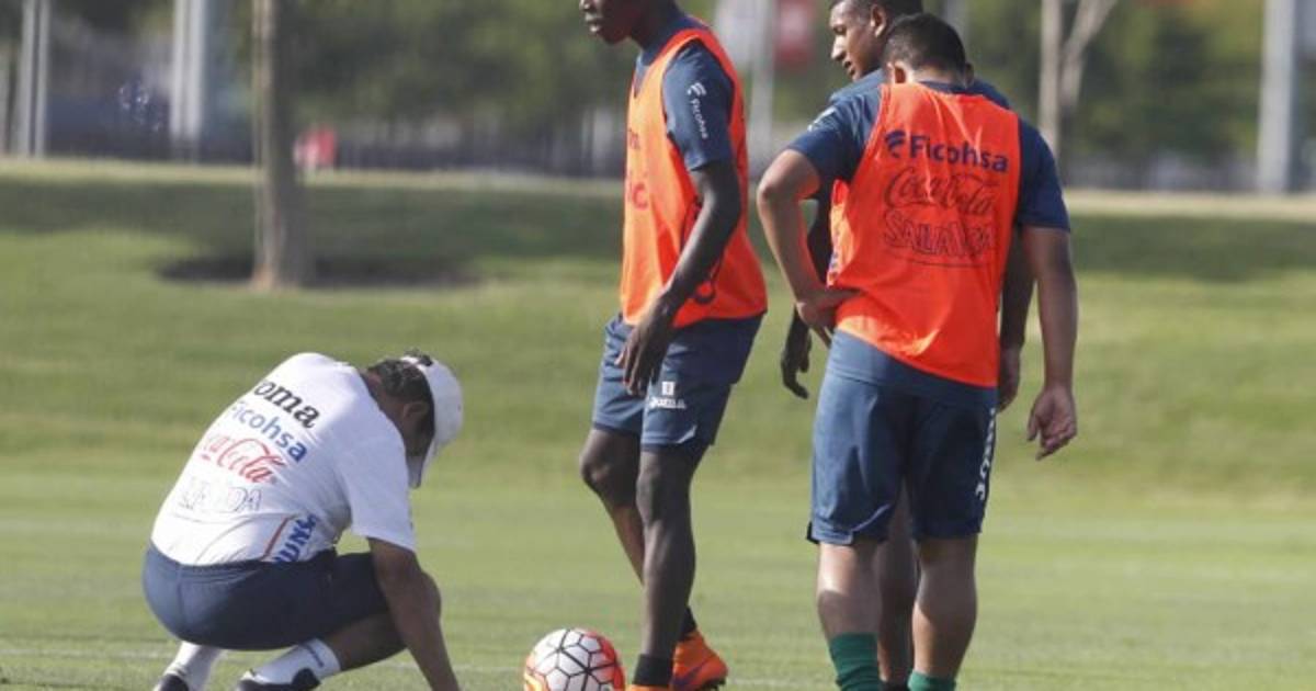 Tras varios segundos de incertidumbre, Jorge Luis Pinto pudo recuperarse y seguir la práctica con normalidad.