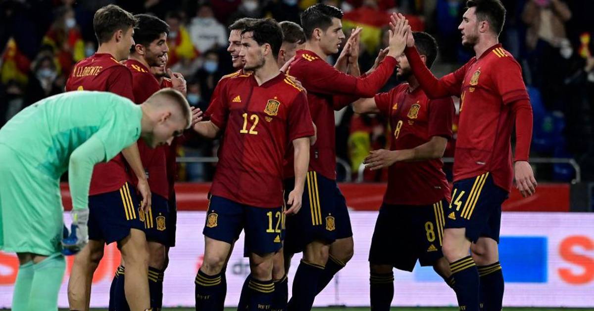 5-España: Unai Simón; Azpilicueta (Pedri, m.81), Hugo Guillamón, Laporte, Jordi Alba (Marcos Alonso, m.58); Llorente, Koke, Carlos Soler (Gavi, m.70); Yéremi Pino, Morata (Sarabia, m.58) y Dani Olmo (Ferrán Torres, m.58).