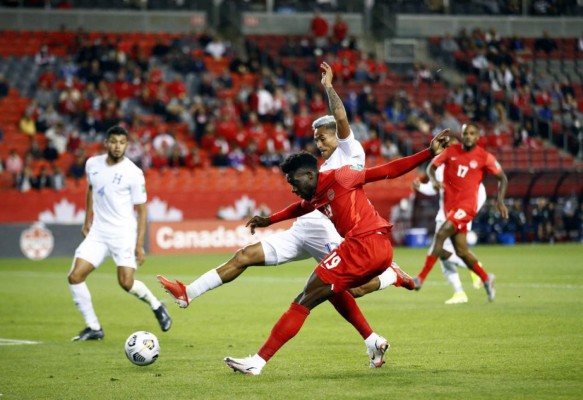 Minuto 50 ¡Ufff! Alphonso Davies desborda y saca centro que logra ser desviado por Kervin Arriaga. Se salvó Honduras.