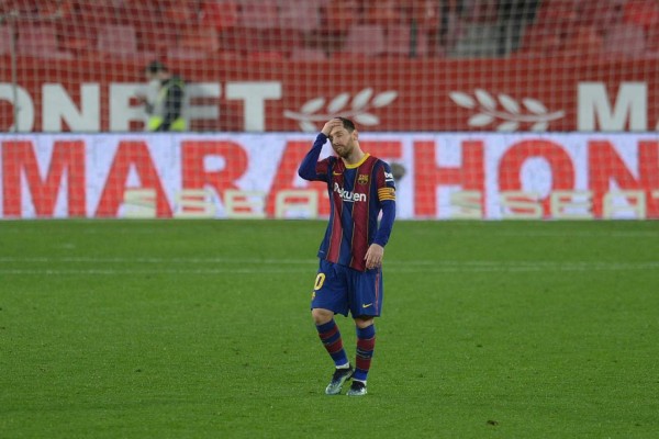 | Lionel Messi quedó decepcionado tras la derrota del Barcelona ante Sevilla. Foto AFP. |