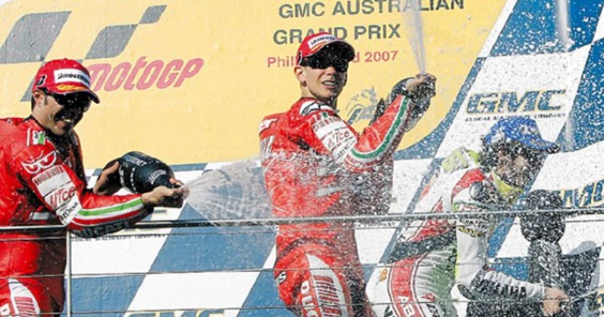 En el circuito de Phillip Island, Stoner celebró de la mejor manera posible el Mundial que matemáticamente se adjudicó a finales de septiembre en la última carrera, el Gran Premio de Japón. Dani Pedrosa (Honda) había salido en ‘pole’ pero, en un brillante comienzo, Stoner, que el martes celebrará su 22 cumpleaños, adelantó al piloto español y al italiano Valentino Rossi, cinco veces campeón en categoría reina, que terminó tercero en su Yamaha. El australiano reconoció que ganar en casa fue la guinda sobre el pastel de una temporada memorable. 'Tener ya el campeonato en mis manos ha sido perfecto para mí. Realmente he podido disfrutar de esta carrera', dijo.