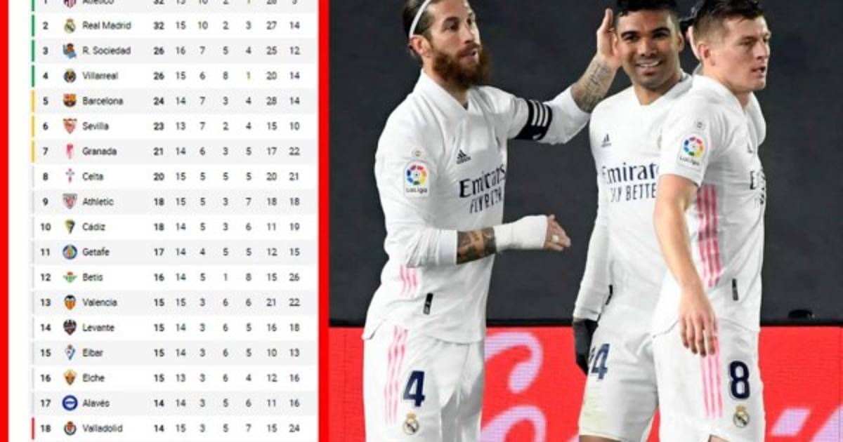 Los de Zinedine Zidane llegaron a 32 puntos, los mismos que suma el Atlético de Madrid, pero éste último tiene dos partidos menos y es el equipo menos goleado del campeonato, cinco contra 14 de los merengues.