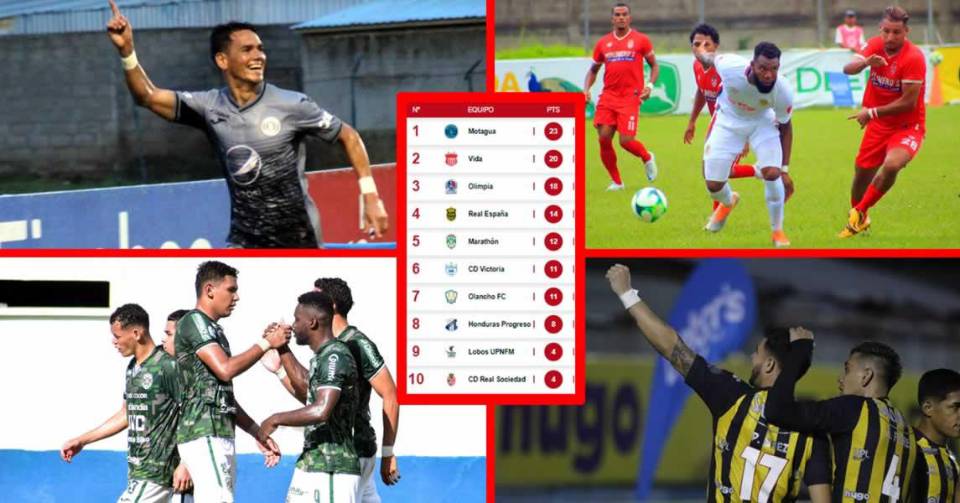 En cuarto puesto se ubica el Real España con 14 puntos tras superar (2-0) al Honduras Progreso y quinto el Marathón con 12 en su casillero luego de su gran triunfo a domicilio (2-3) ante el Olancho FC.