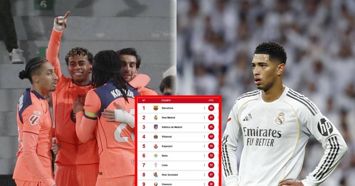 El Barça de Hansi Flick llega a 55 puntos en el liderato de la clasificación de LaLiga, le saca 4 de diferencia al Real Madrid, segundo con 51 pts.