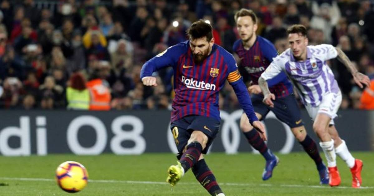 Messi al momento de marcar el primer penal contra el Valladolid.