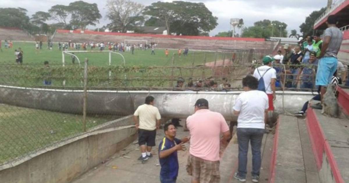 Un partido de fútbol en categoría sub-11 terminó en tragedia este sábado en Bolivia por una torre de iluminación que cayó sobre el césped del Estadio Real Santa Cruz en pleno encuentro deportivo.