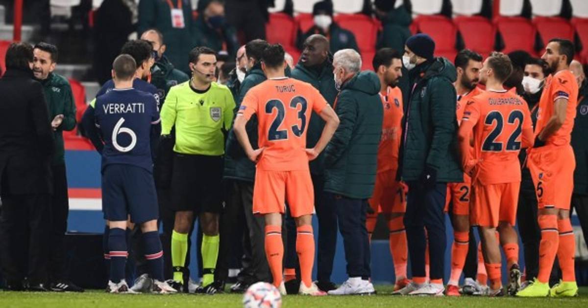 En un gesto inédito en la historia de la Champions, los jugadores del PSG y del Basaksehir decidieron abandonaron la cancha como gesto de protesta por los insultos racistas proferidos por el árbitro rumano Sebastian Coltescu contra Webó.