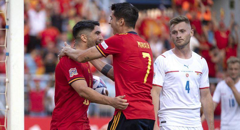 España toma el mando del grupo A2 de la Liga de Naciones tras imponerse este domingo por 2-0 a la República Checa y gracias también a la derrota de Portugal en Suiza (1-0), en un partido que no jugó Cristiano Ronaldo.