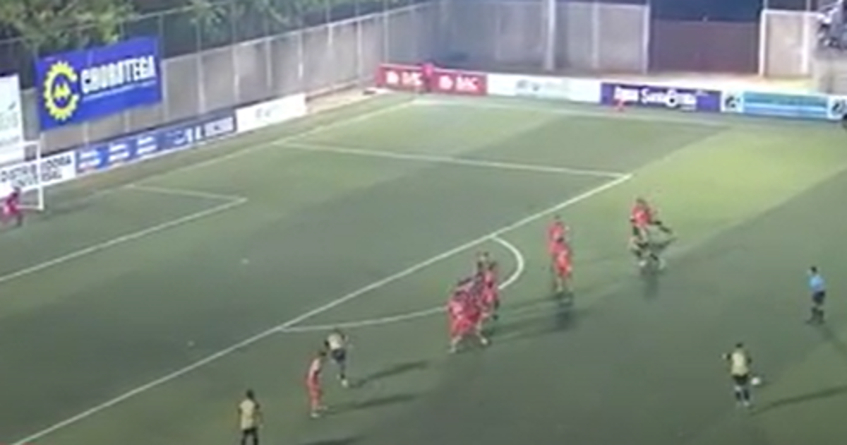 Fue en el minuto 77 cuando el jugador aurinegro tomó el balón para patear un tiro libre de mucho riesgo. Un tiro prometedor que buscó romper el muro del conjunto local.