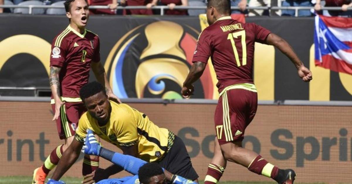 El gol lo convirtió el delantero Josef Martínez a los 15 minutos cuando Martínez recibió el pase y a toda velocidad enfiló hacia el arco rival, para anotar con la zurda por debajo de las piernas del meta de Jamaica.