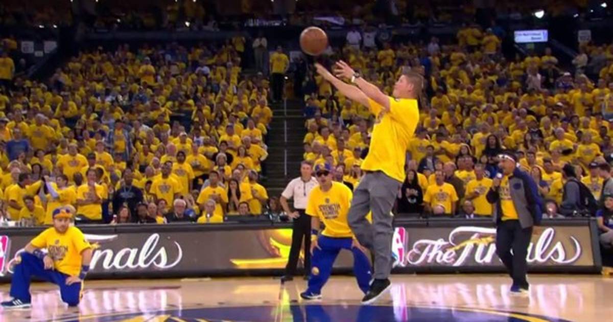El fanático de los Warriors se paró en la línea de la media cancha y encestó la pelota en un solo intento. El Oracle Arena estalló de emoción y el hincha se lleva a casa un coche nuevo.