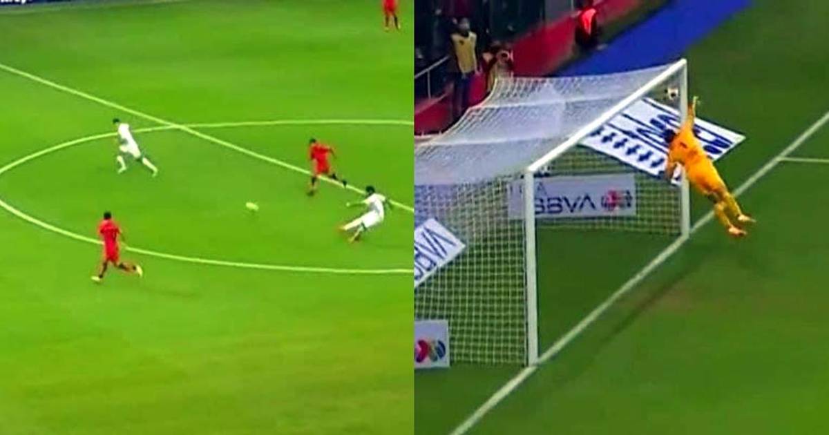 En la repetición se observa que el guardameta de los Diablos Rojos, Luis Manuel García, quiere detener el esférico y termina por lanzarse desde su posición; sin embargo, el gesto no fue suficiente y la pelota se incrustó en el arco.