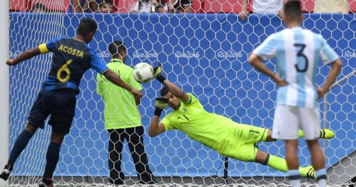 Bryan Acosta desperdició un penal para la Selección Sub-23 de Honduras en el partido contra Argentina en Brasilia por los Juegos Olímpicos de Río de Janeiro 2016.