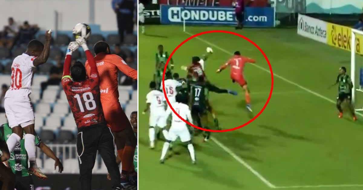 Ni el árbitro ni el línea observaron la mano de Solani Solano, los futbolistas del Juticalpa FC se fueron encima del juez central reclamando la acción, pero la decisión no se cambió. ¡Urge el VAR!