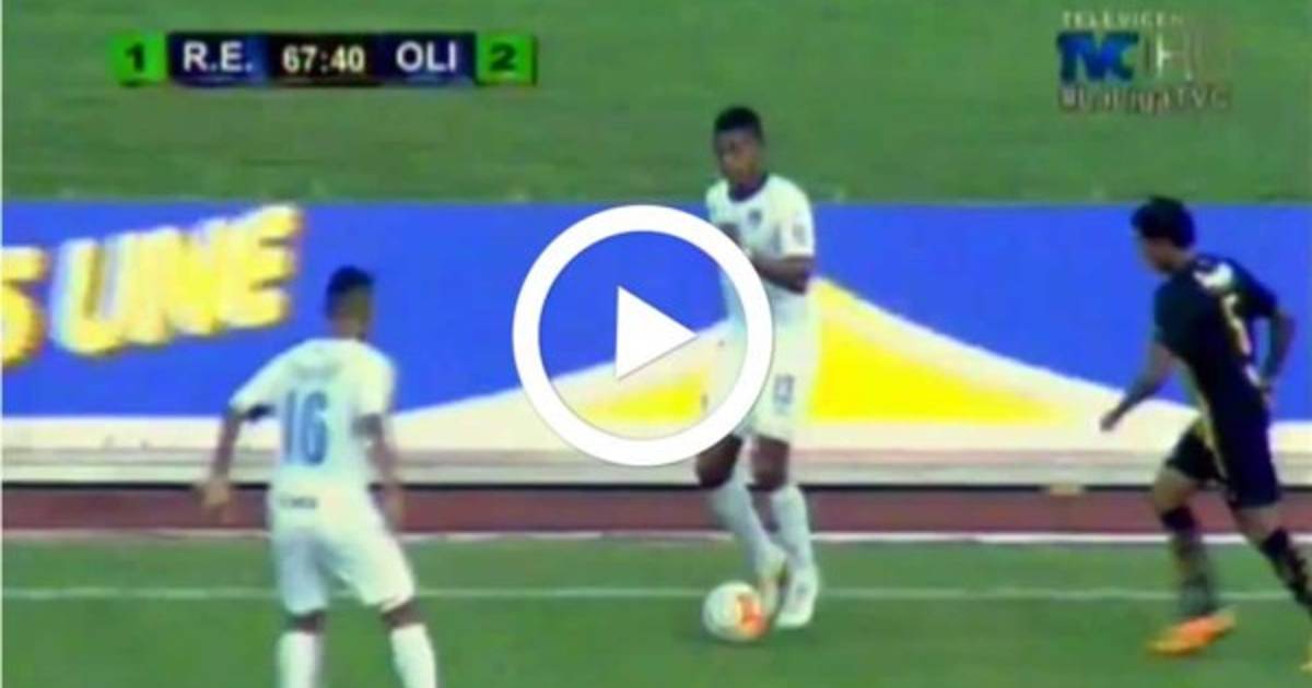 Carlo Costly se lució con un tremendo caño que le hizo a Wilfredo Barahona durante el clásico que el Olimpia le ganó (2-3) al Real España en el estadio Olímpico Metropolitano.