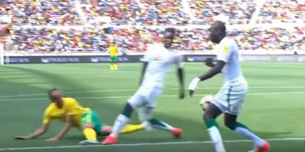 El árbitro ghanés Joseph Lamptey cobró el penal más impresentables de los últimos tiempo, tras sancionar la pena máxima luego que el balón rebotara en las rodillas de un defensor de Senegal.