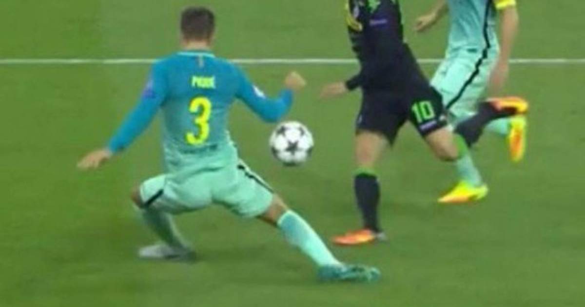 La esférica pegó en el central por lo que era una falta penal a favor de los germanos. El Barça se salvó de complicarse aún más en su visita a la cancha del Borussia Park, al final Piqué marcó el gol del triunfo definitivo.