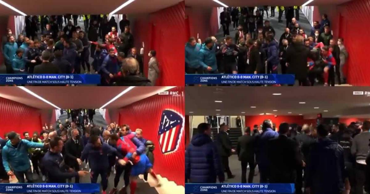 Efectivos de la Policía Nacional intervinieron en el túnel de vestuarios del estadio Wanda Metropolitano para separar a jugadores y miembros de ambos equipos en un enfrentamiento que mantenían al término del partido de vuelta de los cuartos de final de la Champions League entre el Atlético de Madrid y el Manchester City, según se puede observar en unas imágenes difundidas por ‘Movistar’.