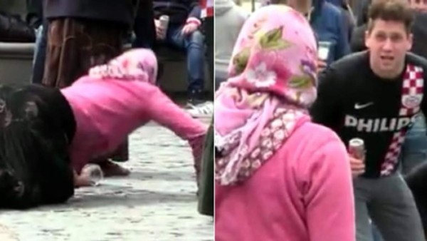 Los hinchas del PSV de Holanda que fueron a España para el partido entre su equipo y el Atlético de Madrid por la UEFA Champions League hicieron noticia al humillar a un grupo de mendigos en una plaza de la capital española.