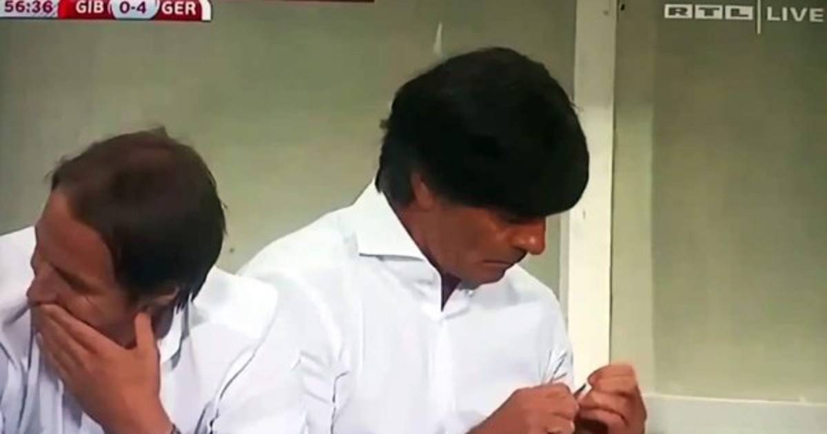 El seleccionador alemán Joachim Löw aprovechó el partido frente a Gibarltar para ¡limarse las uñas! Tras el 4-0 de su equipo, el técnico se relajó en el banquillo y sacó una lija de su bolsillo para esculpirse las uñas.