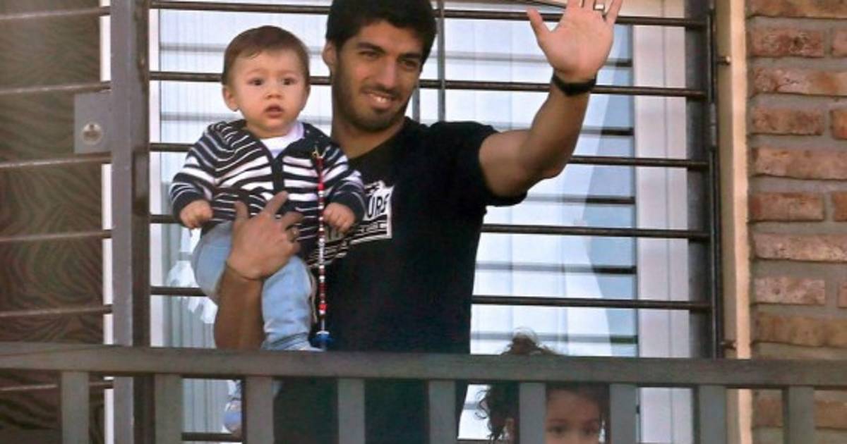 El goleador de Uruguay, Luis Suárez, quien fue expulsado por la FIFA de lo que resta del Mundial Brasil 2014, regresó a su país y saludó con sus hijos, desde el balcón de su casa a los aficionados que se encontraban afuera de su hogar para mostrarle el apoyo incondicional.