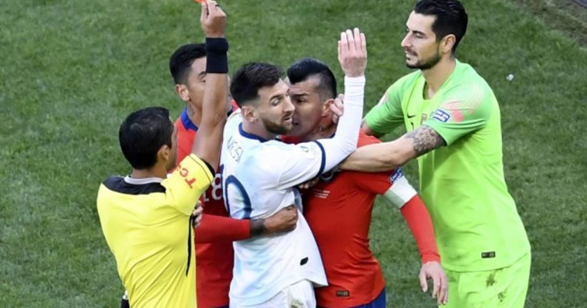 El astro argentino Lionel Messi fue expulsado del partido por el tercer puesto de la Copa América-2019 que se está disputando en Sao Paulo tras un encontronazo con el chileno Gary Medel, que también recibió tarjeta roja.